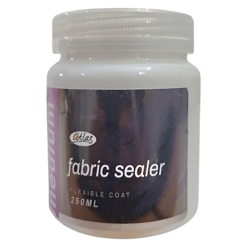 Atlas Fabric Sealer 250ml is a textile-safe sealing medium formulated to protect painted or printed designs on fabric. Once applied, it dries to a flexible, water-resistant layer that mimics a soft plastic coating without compromising the feel of the fabric. Sourced from Atlas Paints, this product is widely used in craft, fashion, and DIY textile projects.
