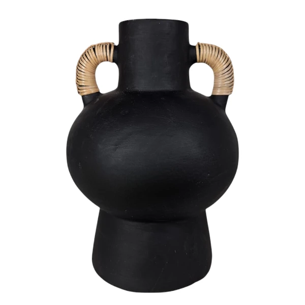 - Unique Texture: The contrast between the smooth terra body and the textured rattan handles makes the vase a visually interesting piece.