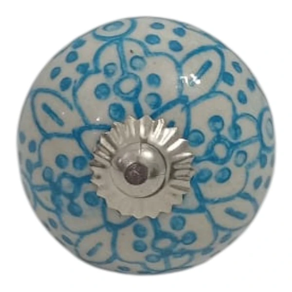 This ceramic round knob is a decorative and functional hardware item designed to be used on furniture. The product features a floral pattern in blue and white, which provides a classic look. The knob is made from ceramic, a material that is both durable and easy to clean.