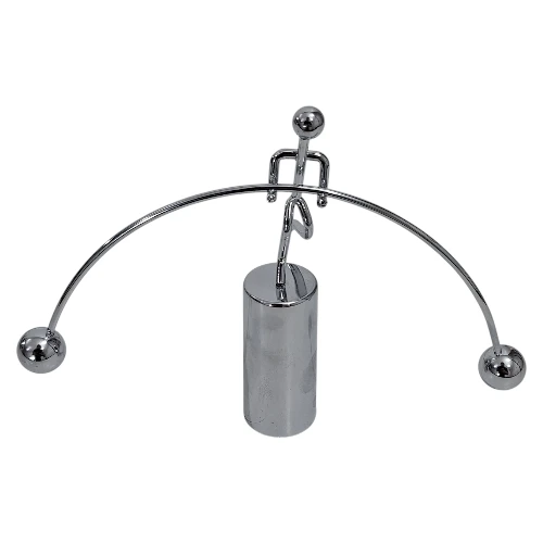 This desk sculpture blends physics and design in a compact, visually engaging form. The polished silver finish adds a futuristic touch, while the kinetic structure invites interaction. As the curved bar sways gently with each push, it offers a moment of calm and curiosity—perfect for workspaces, studios, or gift-giving.