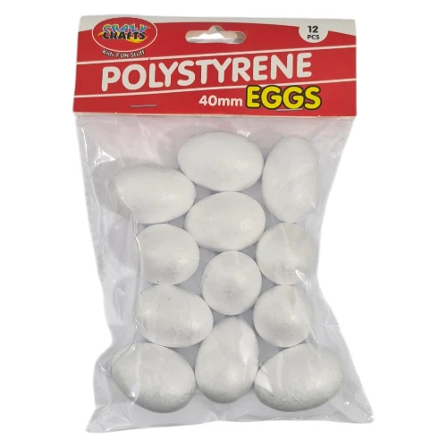 Crazy Crafts Polystyrene Eggs 40mm, 12 Piece – Ready-to-Decorate Craft Bases