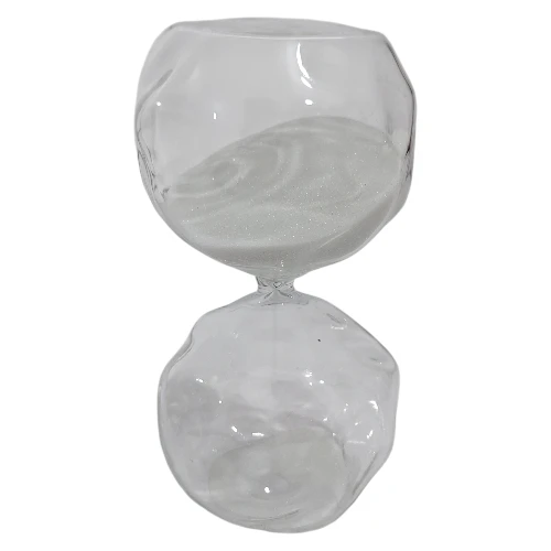 This hourglass reimagines traditional timekeeping with a fluid, sculptural twist. The distorted glass chambers evoke the feel of molten movement, while the sparkling white sand adds a calming visual rhythm. Whether used for meditation, task timing, or simply as a decorative centerpiece, it brings elegance and individuality to any space.