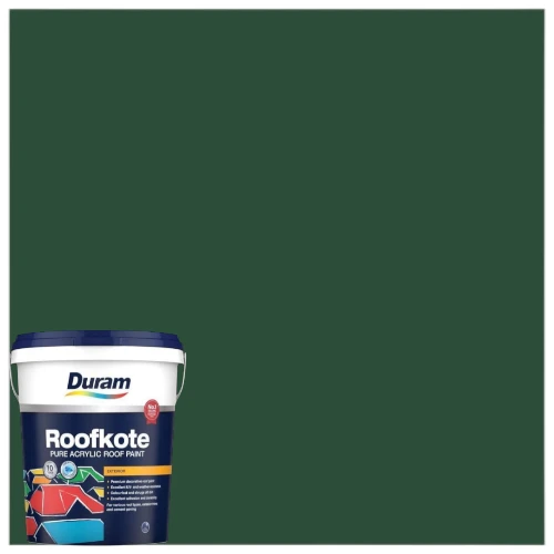 Duram Roofkote Acrylic Paint in Heritage Green is a premium pure acrylic roof coating designed for lasting protection. It resists UV damage, fading, and chalking, while maintaining vibrant colour across roof types and exterior trims. With its eco‑friendly, APEO‑free formula, it supports rainwater harvesting and ensures safe application. This paint delivers superior coverage, durability, and a low‑sheen finish that enhances both function and appearance.