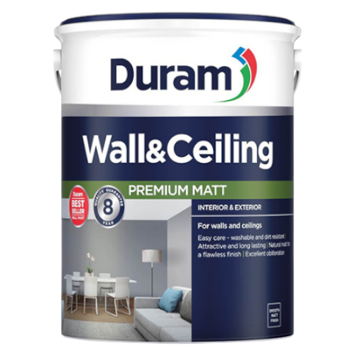 Duram Wall and Ceiling Paint is a versatile acrylic coating designed for both interior and exterior applications. Its natural matt finish ensures a flawless look, while its durable formulation resists UV and weathering. White provides a timeless, clean aesthetic that enhances any space, covering imperfections and delivering long‑lasting beauty.