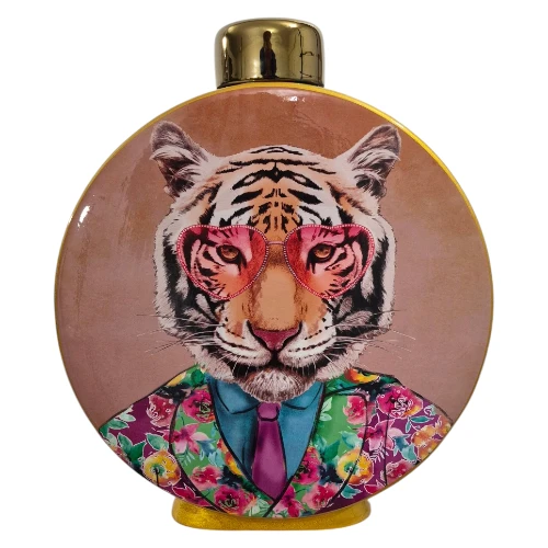 A decorative ceramic jar like this adds personality to any interior, especially when bold and playful styling is preferred. Not only does the tiger design with heart-shaped glasses introduce a quirky artistic element, but it also fits seamlessly into modern homes across Johannesburg, Cape Town, and Pretoria. Furthermore, the ceramic construction ensures durability, while the rubber base pads protect surfaces from scratches during everyday use. As a result, whether placed in a Potchefstroom living area or a Durban entertainment space, this jar delivers both functionality and visual impact in one striking piece.