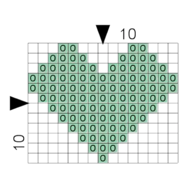 - Follow the provided pattern to cross-stitch the green heart design onto the leather keyring.
