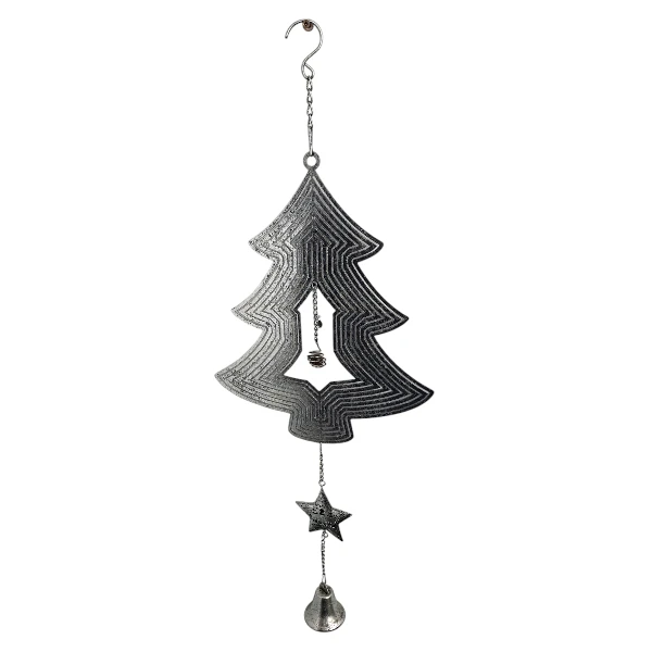 • Colour: Silver tree and bell with a darker metallic grey chain for contrast.
