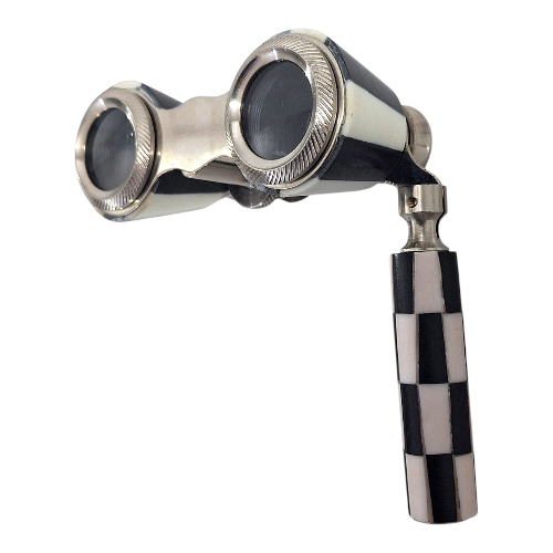 These 10cm vintage-style theatre binoculars combine classic design with practical functionality. The bold black and white checkerboard finish adds a striking Art Deco touch, while the extendable handle enhances usability and authenticity. Whether used for actual viewing or styled as a decorative prop, they bring sophistication and character to any space. Crafted from high-quality metal, they offer a substantial feel and timeless appeal—perfect for collectors, theatre lovers, or anyone curating a retro-inspired interior.