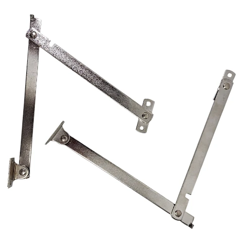 Designed for stability and controlled motion, this folding hinge stay set provides reliable support for cabinet doors, lids, or flaps. Its nickel-plated finish enhances durability while ensuring smooth articulation for long-term use.