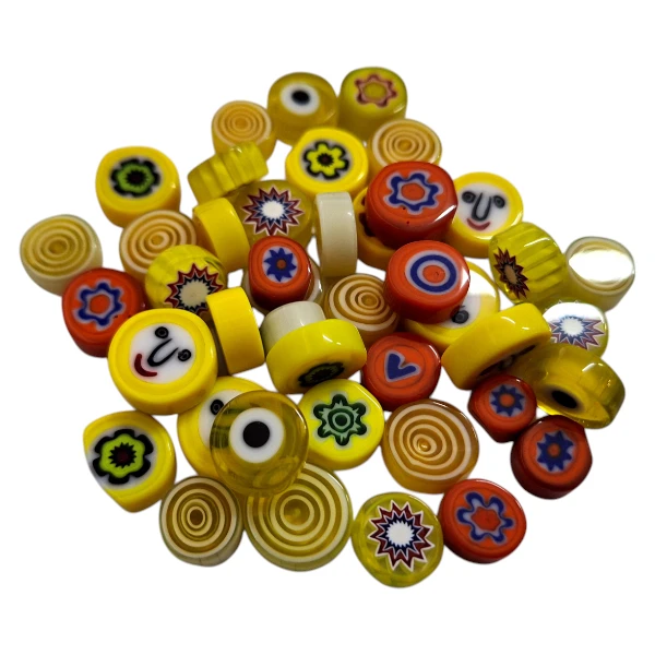 The Millefiori Mosaic Glass | Yellow and Orange Mix embodies artistry and craftsmanship with its vibrant designs and premium glass material. Perfect for adding unique accents to jewelry or decorative projects, these beads offer creative versatility and captivating beauty.