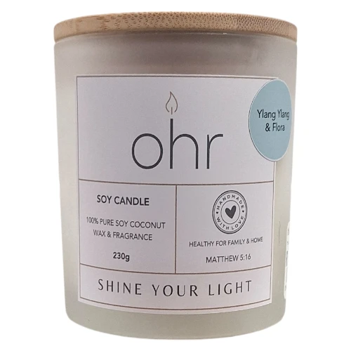 The OHR Ylang and Flora Soy Candle is crafted for those who value both wellness and aesthetic charm. Its floral aroma—anchored by ylang ylang—invites calm and clarity, while the soy coconut wax ensures a clean, long-lasting burn. Whether used during meditation, evening wind-downs, or decorative display, this candle elevates any space with gentle fragrance and visual warmth.