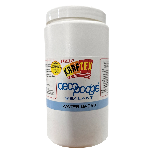 Pratley Kraftex Deco Podge Sealant is a water-based medium formulated to seal and protect porous surfaces, photographs, and decoupage elements. Developed by Pratley, this product ensures a bubble-free finish when used beneath high-gloss coatings like Pratiglo. Its adhesive properties also make it ideal for securing cuttings and photos before sealing.